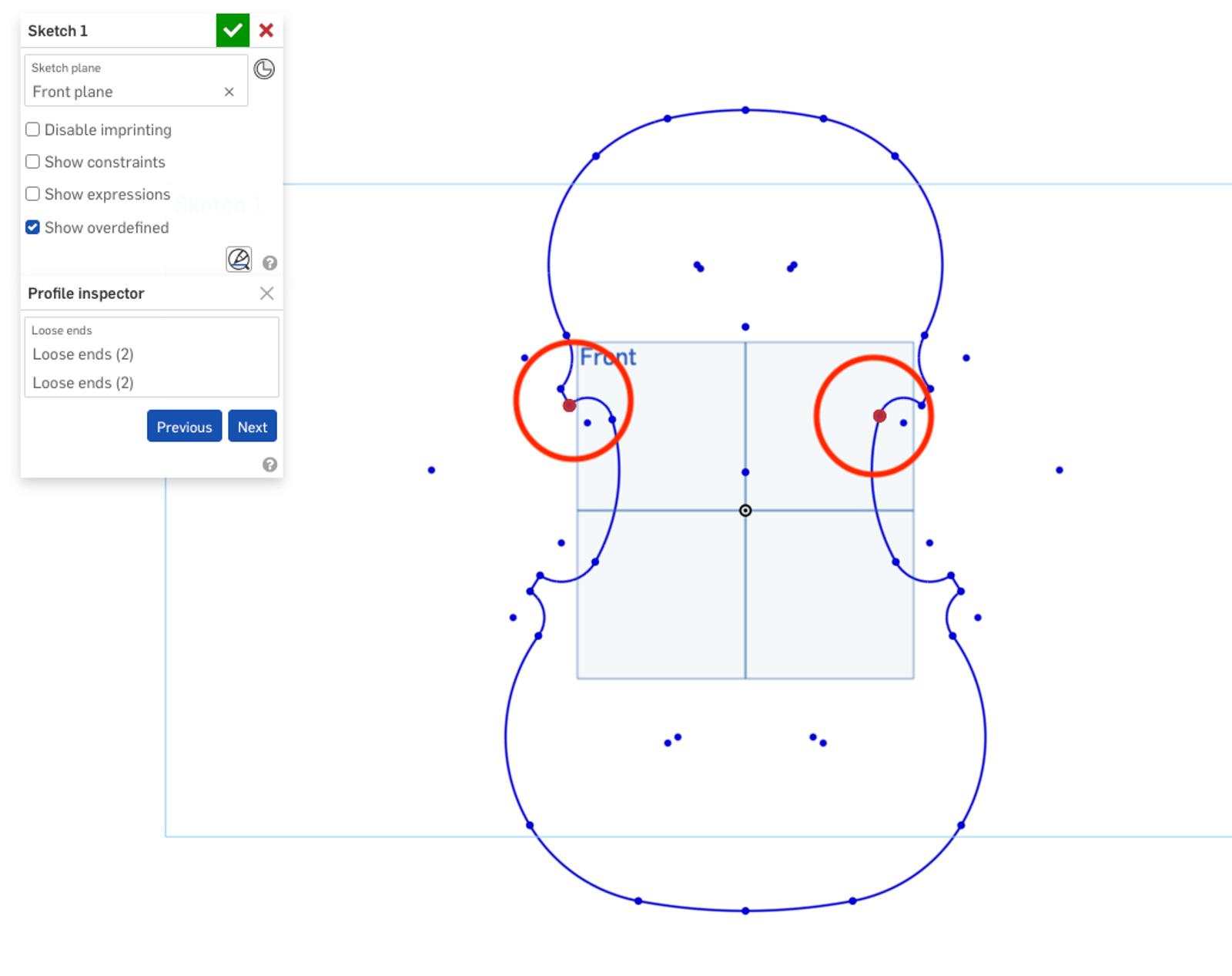 In such cases, Onshape's Profile Inspector can help identify and correct lines with open ends.