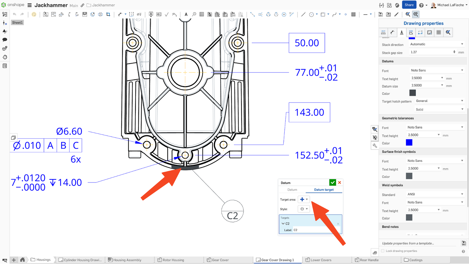 Datum target symbols can now be created using a custom sketched-in shape or area region of your model.