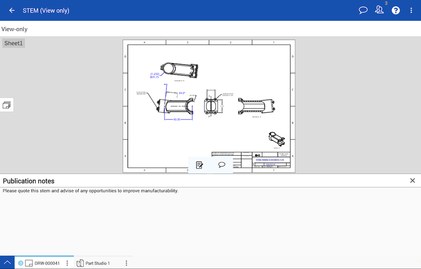 External thread callouts can be created in the Part Studio for all mobile device users.
