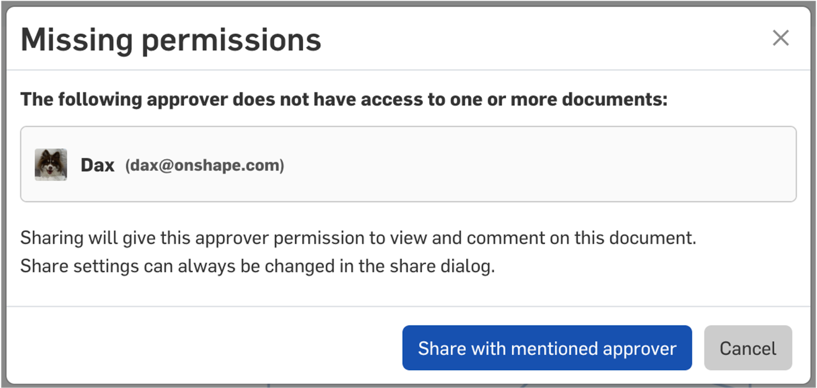 You will now receive a notification if you add an approver to a Release candidate, but they do not have permission to view the Document containing the release.