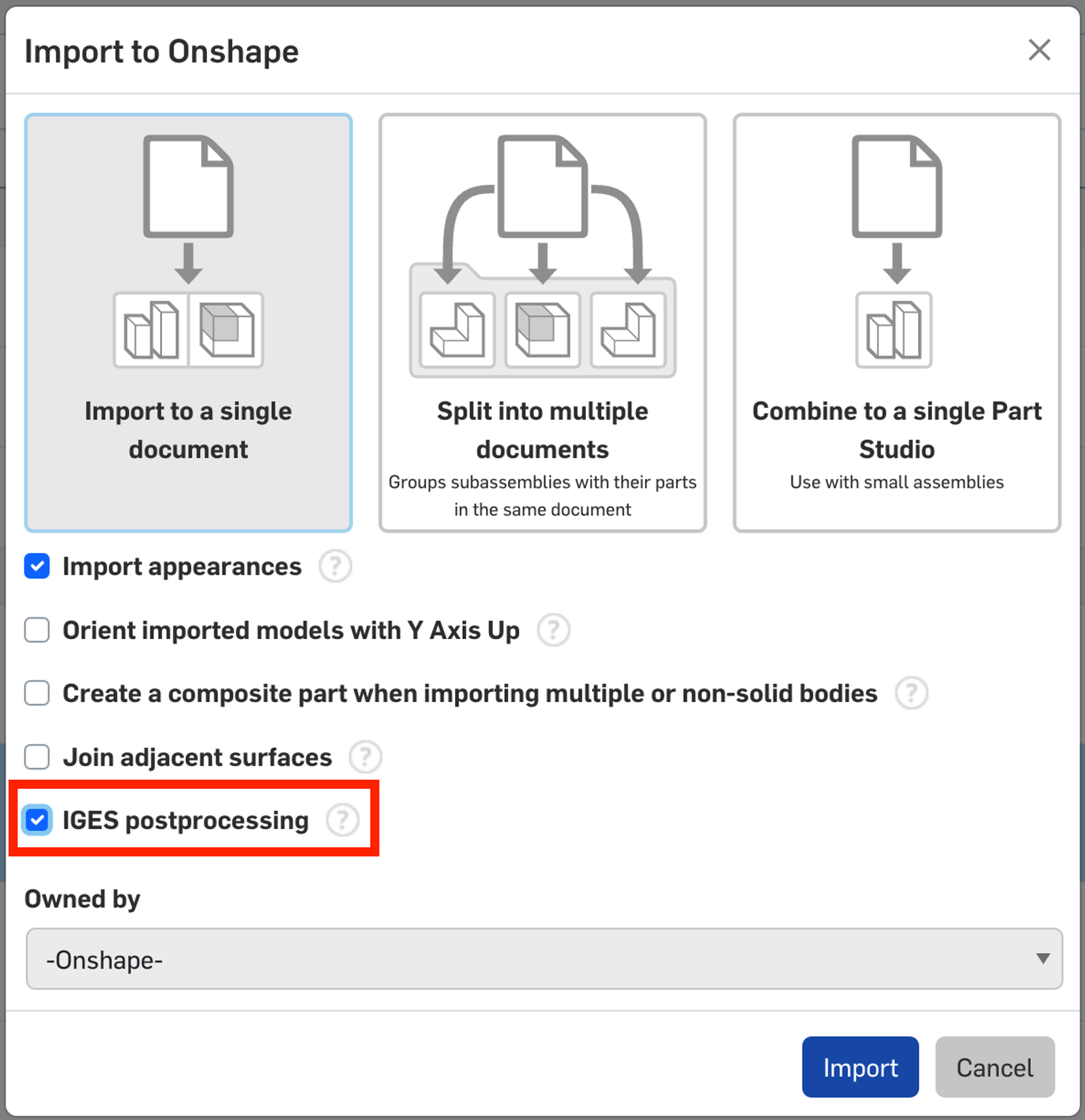 A new option for IGES postprocessing has been added upon import. This option ensures that linear edges are not imported as curves.