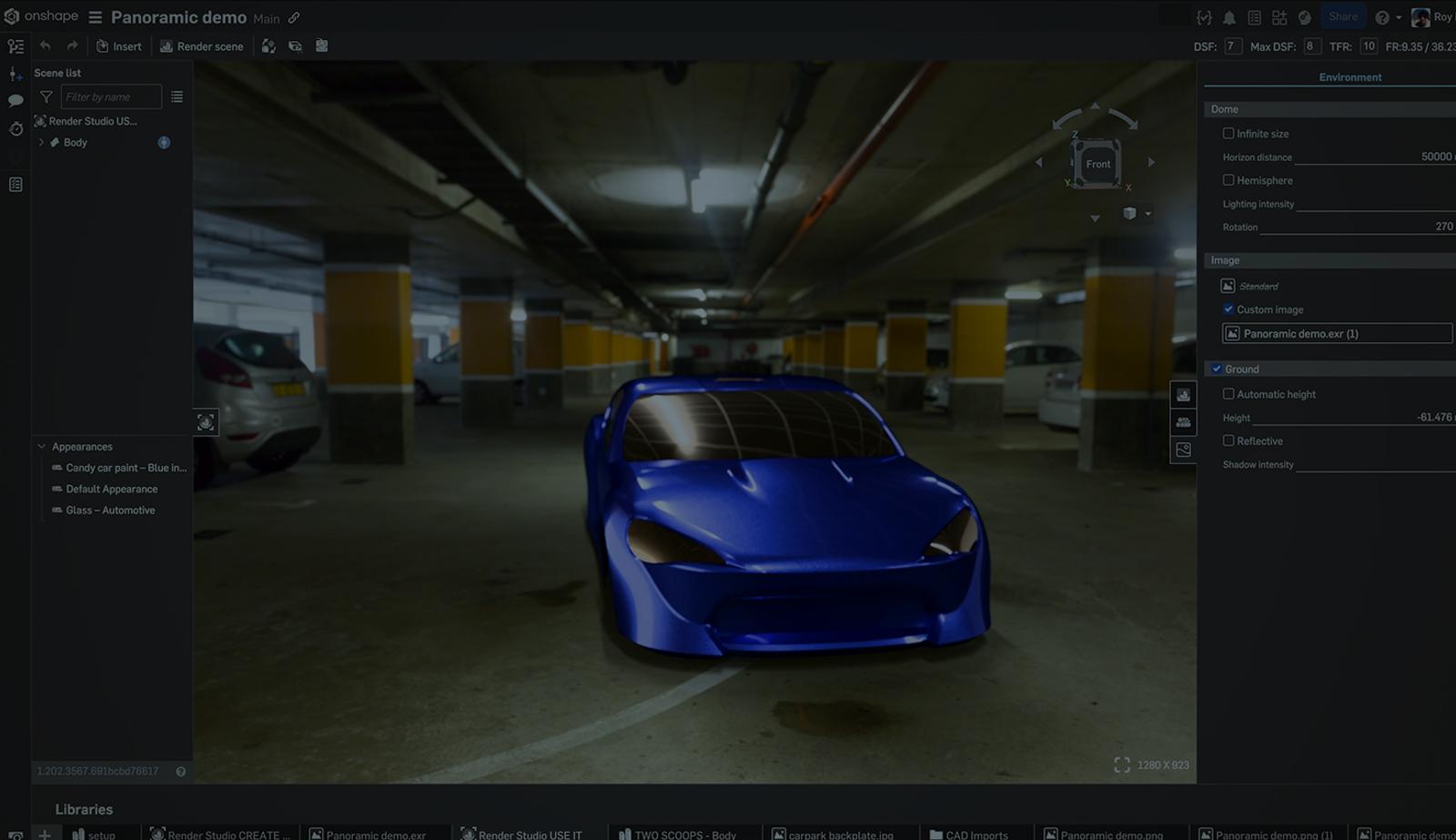 Panoramic scenes (such as the default ones provided in Render Studio) are otherwise complicated to create, and often require expensive physical hardware to photograph. Being able to define them yourself in a Render Studio allows for unmatched control of your lighting environment, for both total unique or very consistent results across multiple renderings.