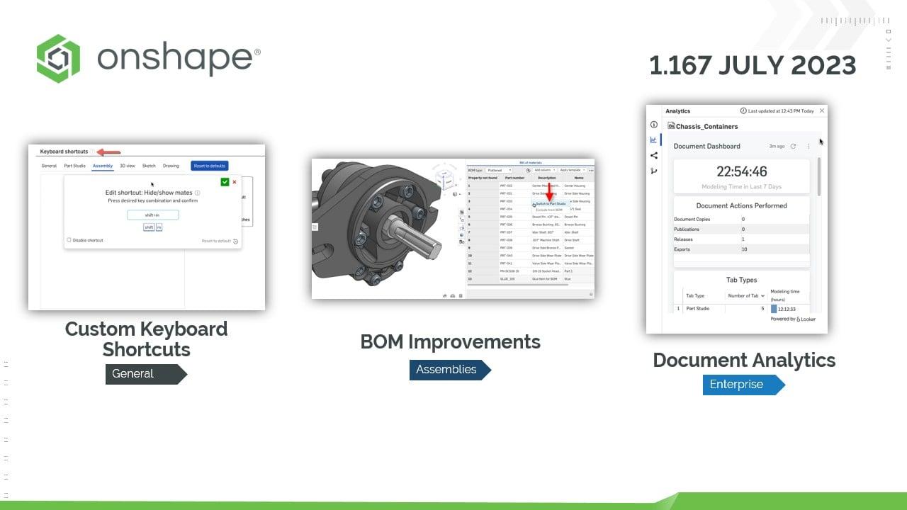 Please take a moment to try out these new features and improvements and leave your comments in the Onshape Forum post. For a detailed list of all the changes in this update, please see the changelog.