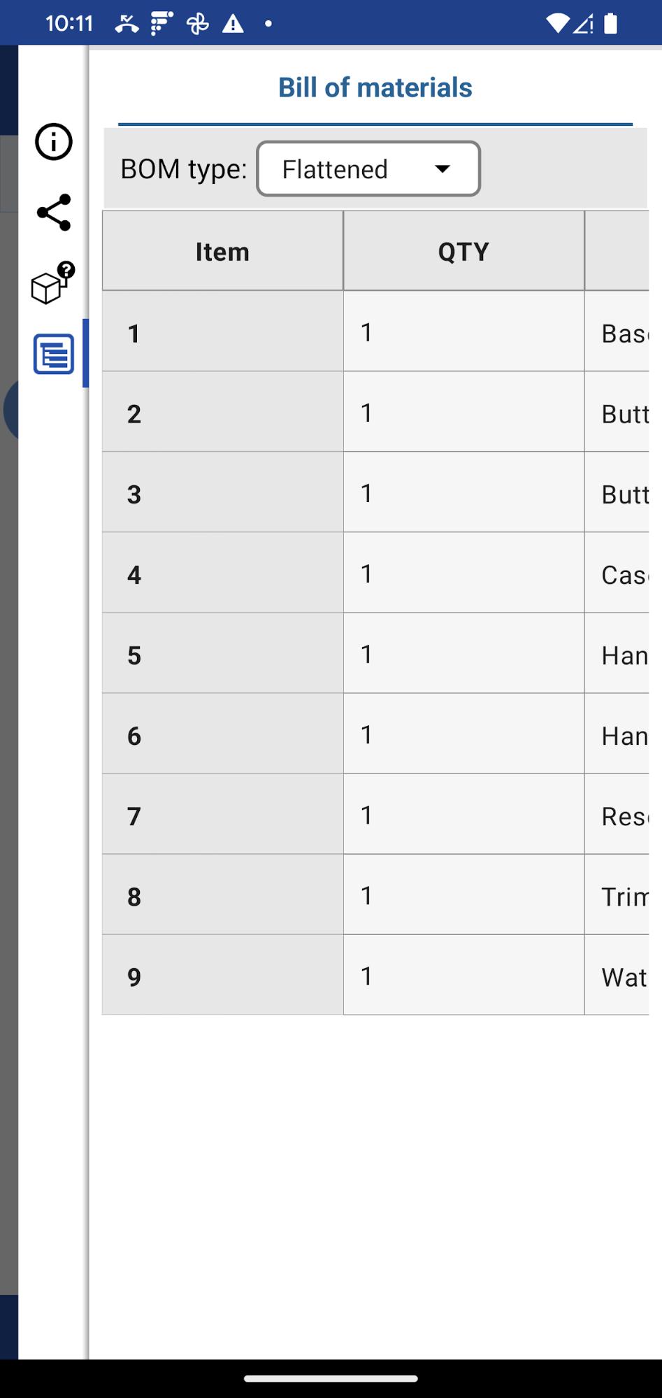 Assembly BOMs can now be accessed from the side panel on an Android device.
