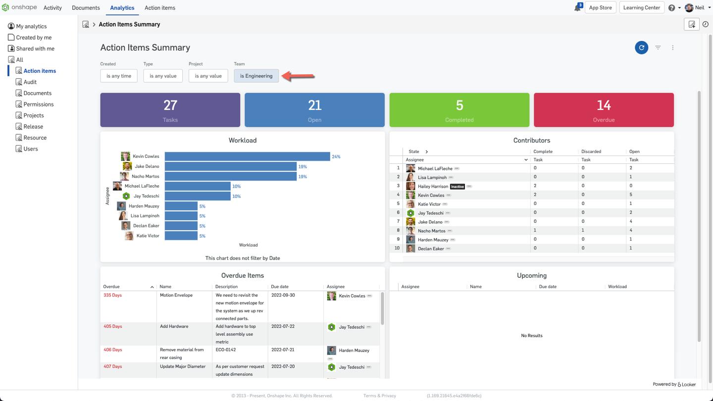 You can now filter Action Item analytics by the team responsible for them. This gives you an easy way to see outstanding Tasks that belong to a specific team.