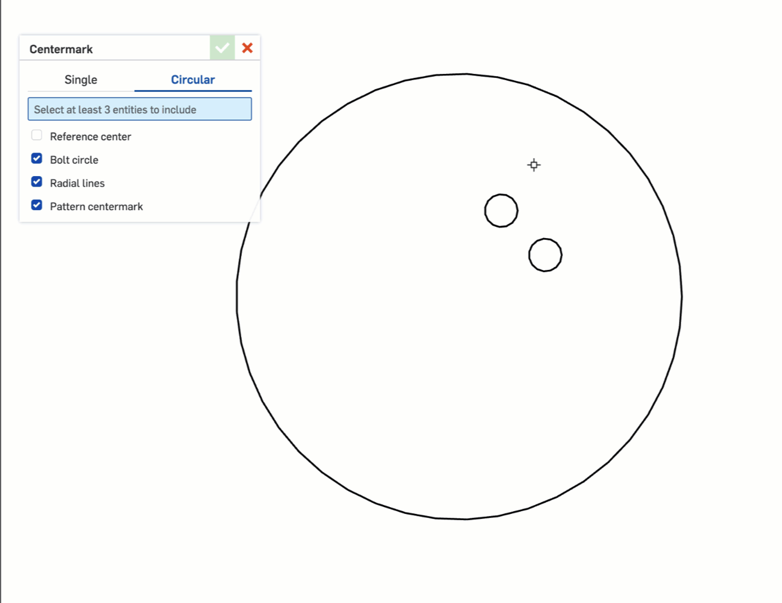 A new Reference center checkbox has been added to the Centermark dialog under the Circular option.