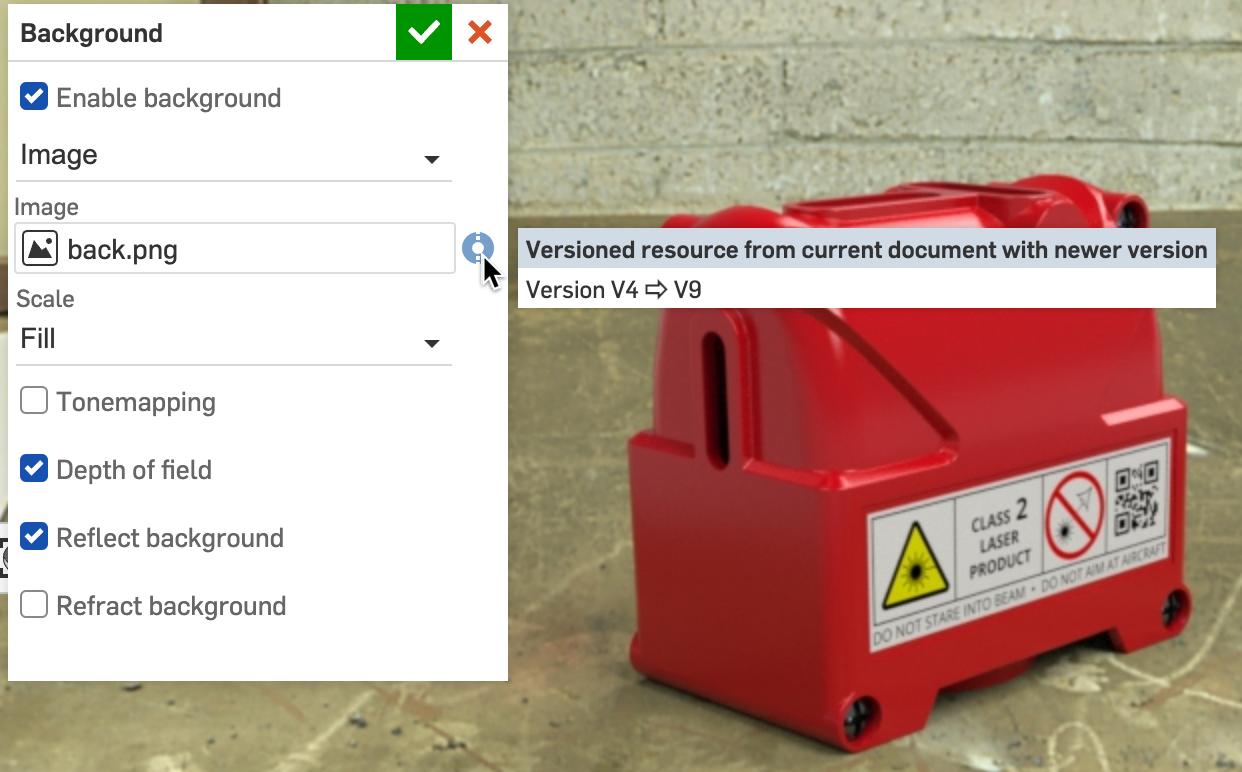 Resources, such as images used for backgrounds, now have a resource indicator to let you know if they are current or require an update.