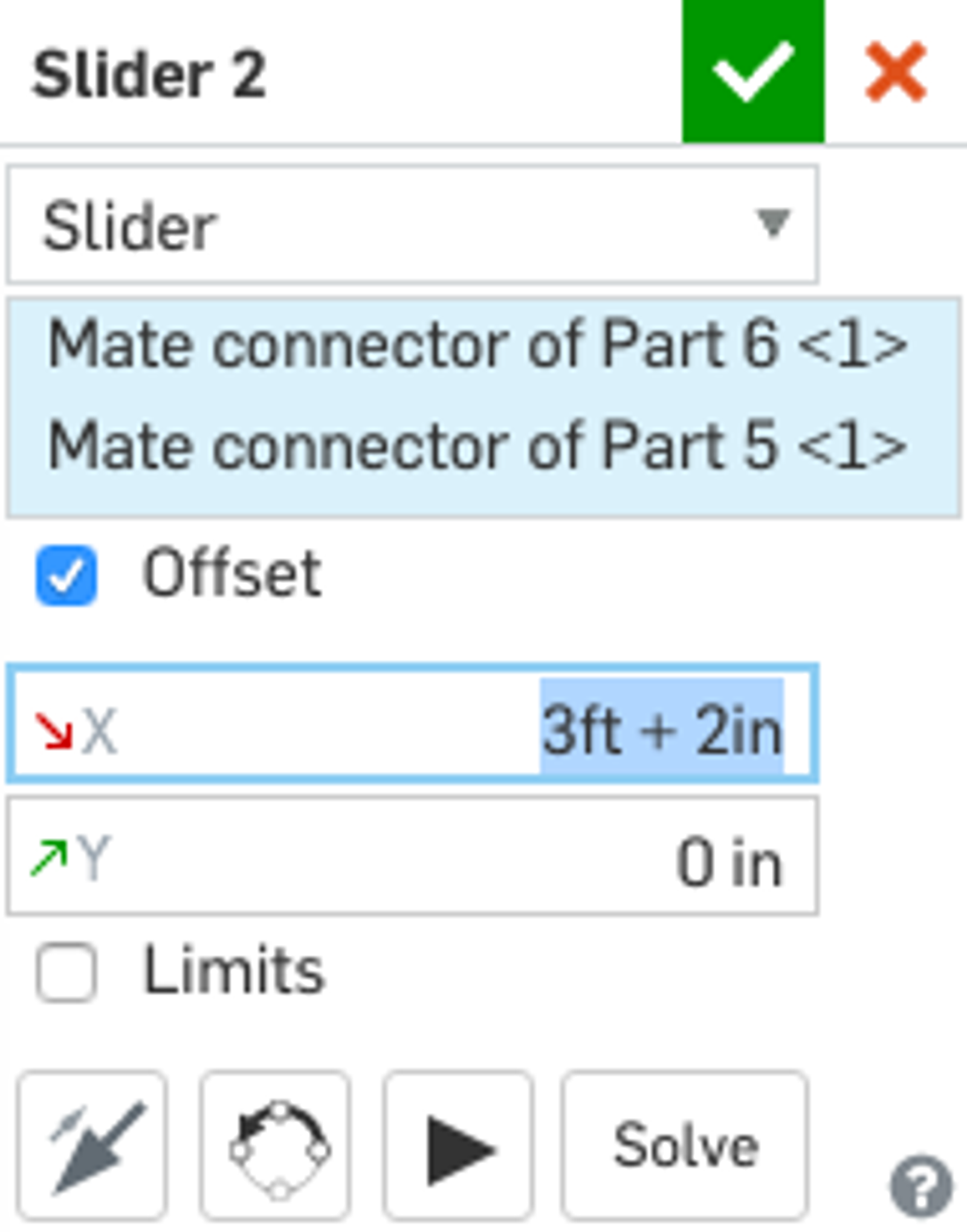 Expressions can now be used for values in Onshape assemblies. This is particularly useful for setting offset values or limits.