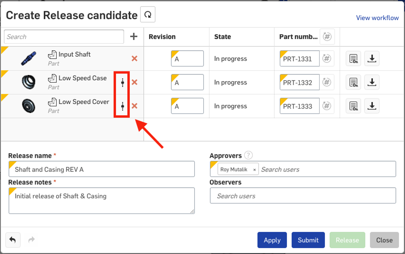 The last Onshape release included an improvement that allowed you to create a Release candidate from an existing version in a Document. You'll now clearly see a version icon in the Release candidate dialog when an element in the Release candidate is selected from a version, rather than the workspace.