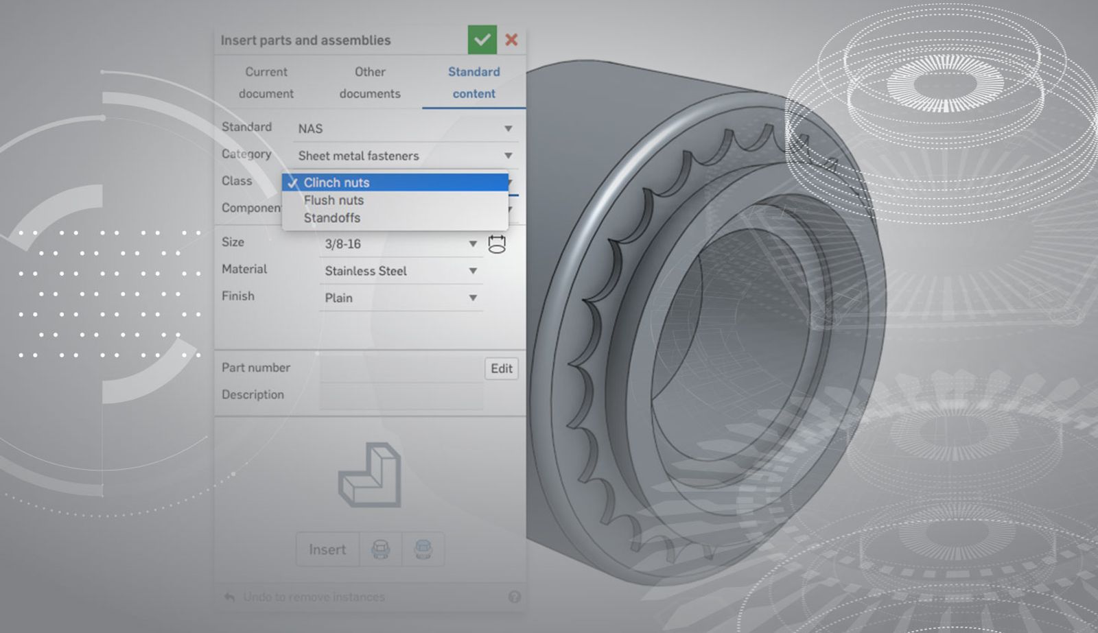 We have added standard content for DIN bolts, screws, and nuts as well as sheet metal fasteners (NAS/PEM). To view the list of newly added standard components and submit requests for additional hardware please reference this forum post.