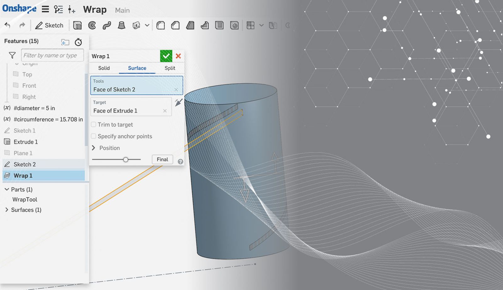 You can now wrap sketch or surface entities around a cylinder.