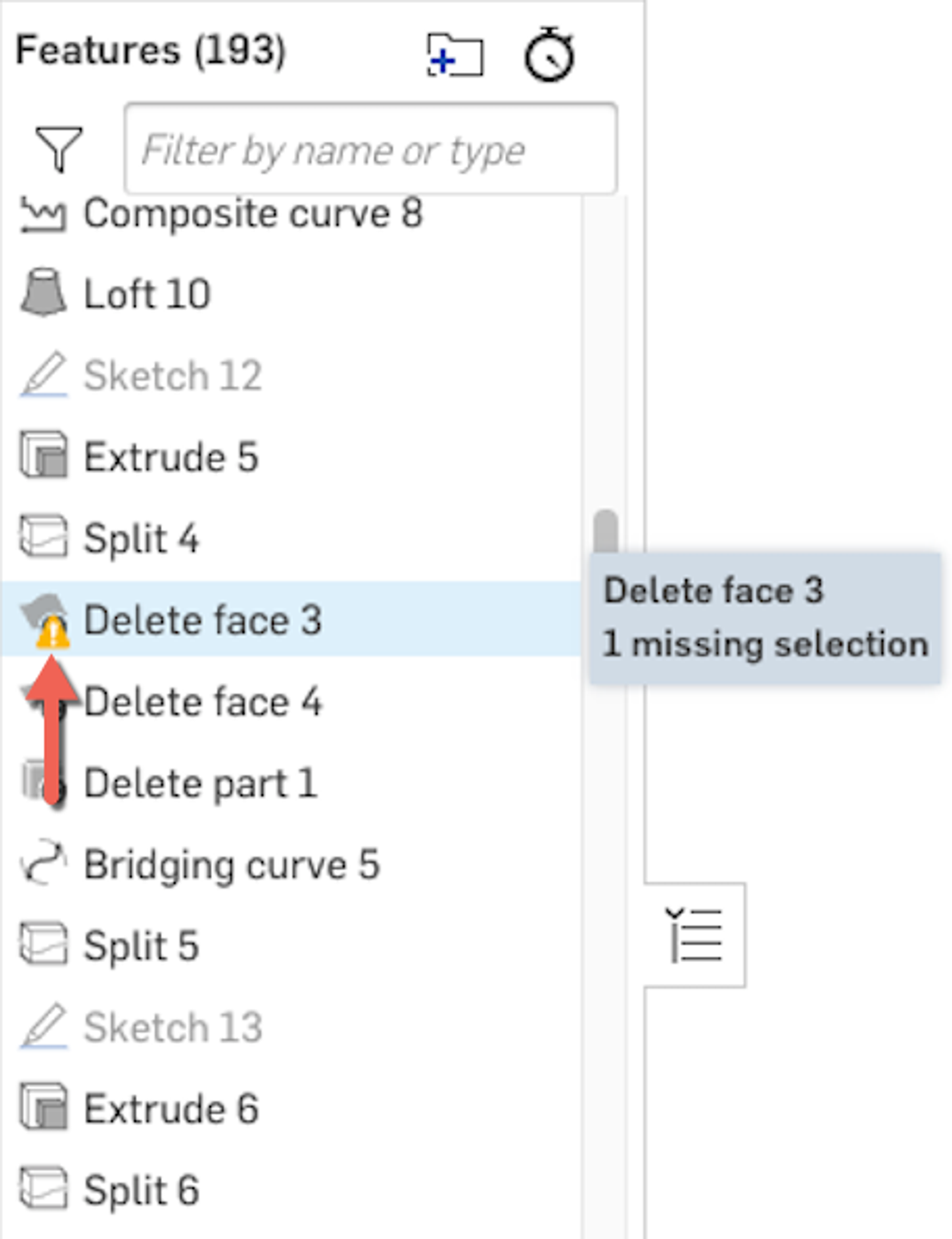 You will now see a special warning indicator for missing selections. If you hover over the feature with the warning, it will tell you the number of missing selections.