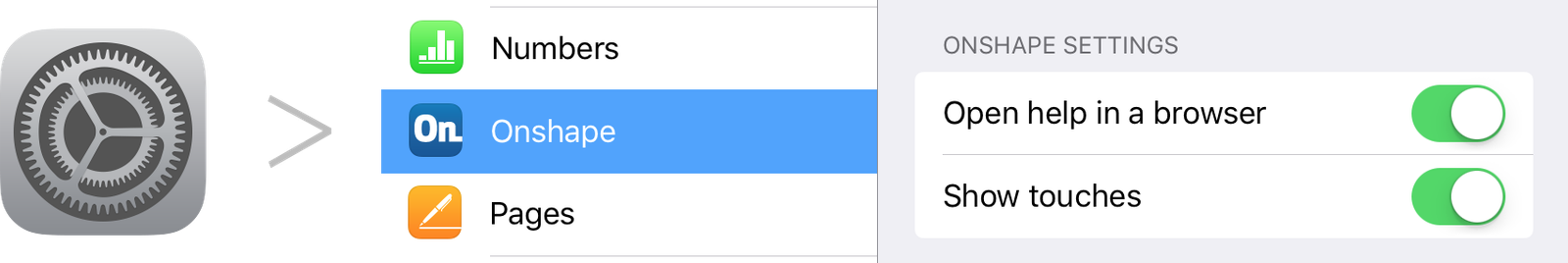 Due to overwhelming demand, we’ve added two new options to the Settings page on iOS. Open the iOS Settings app, scroll down until you find Onshape and toggle the options on to give them a try (if the Settings app was open when you updated Onshape, you will need to quit the Settings app and reopen it again for these options to appear).