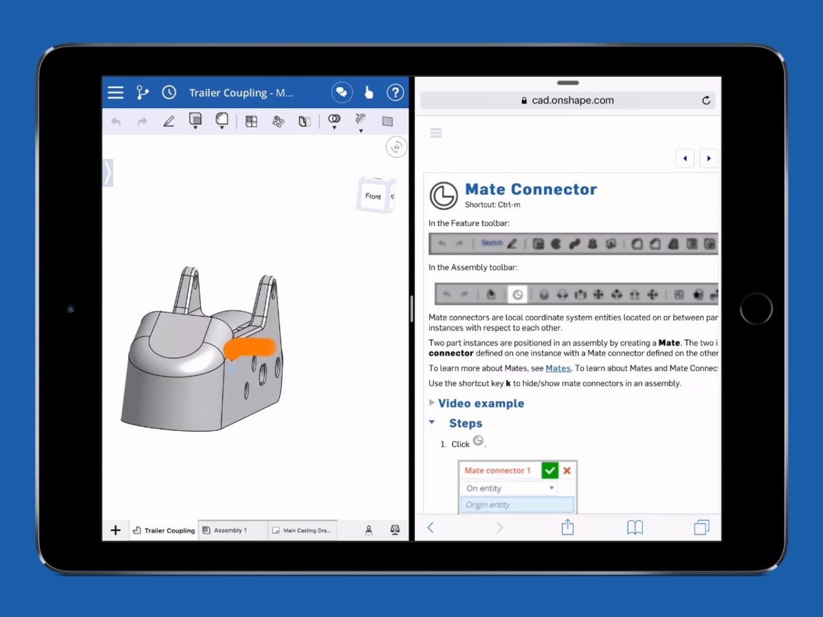 Onshape can now take advantage of multitasking in iOS 9 to display compatible apps side by side. So now you can have Onshape and Safari open at the same time (or Skype, or email, etc.) – ideal if you are working through a tutorial or collaborating with someone else. Multitasking also supports picture-in-picture so you can watch your favorite TV show, the latest blockbuster, or an Onshape video tutorial, all while modeling in 3D.