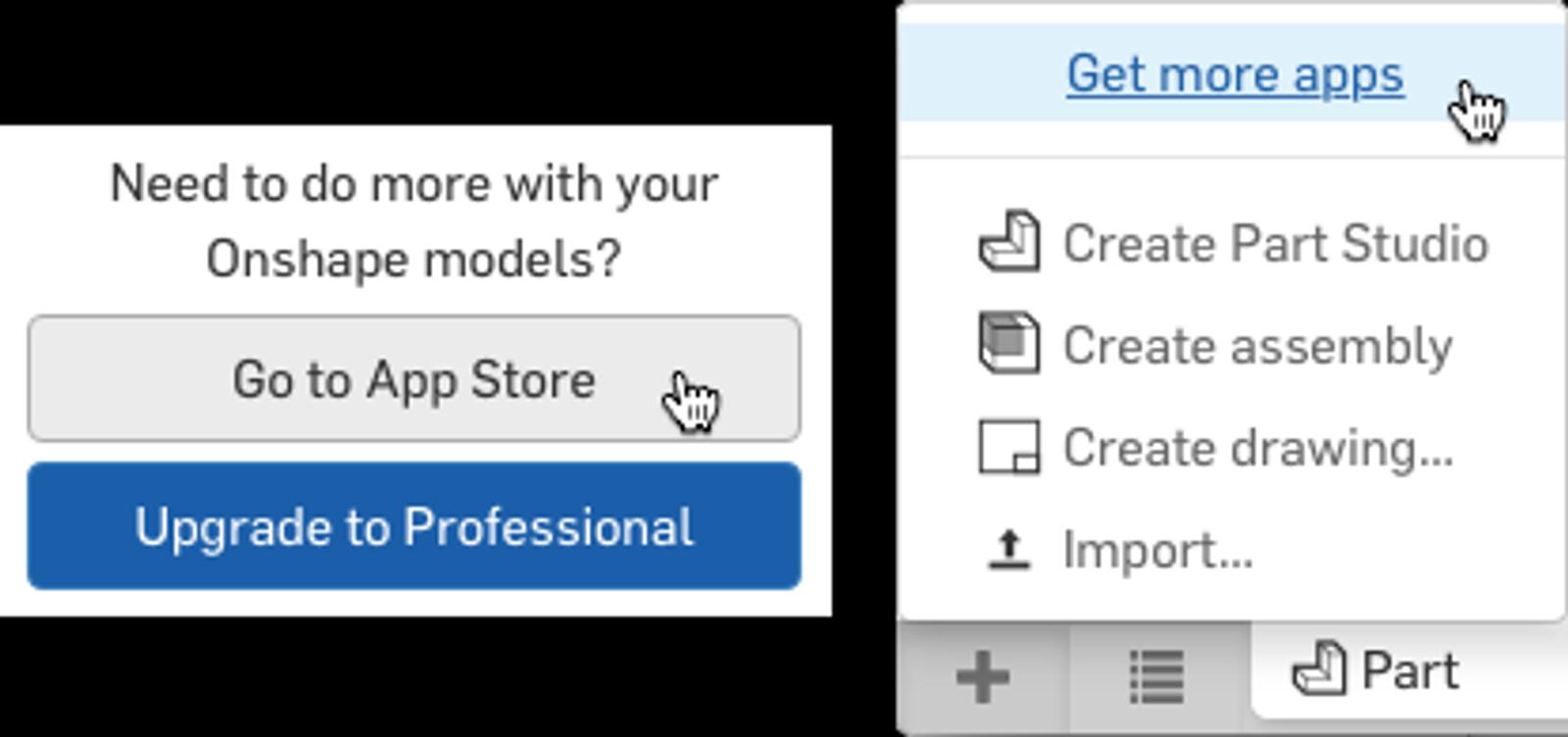 There are several convenient ways to browse the Onshape App Store. You can either: