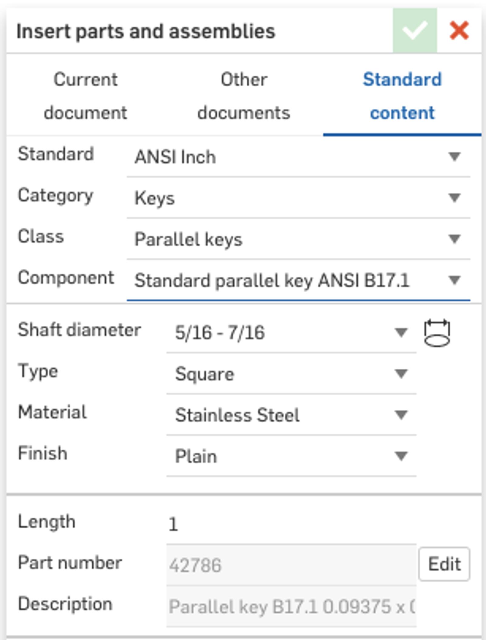 You'll now find parallel and tapered shaft keys and keyways in the Onshape Standard Content Library.