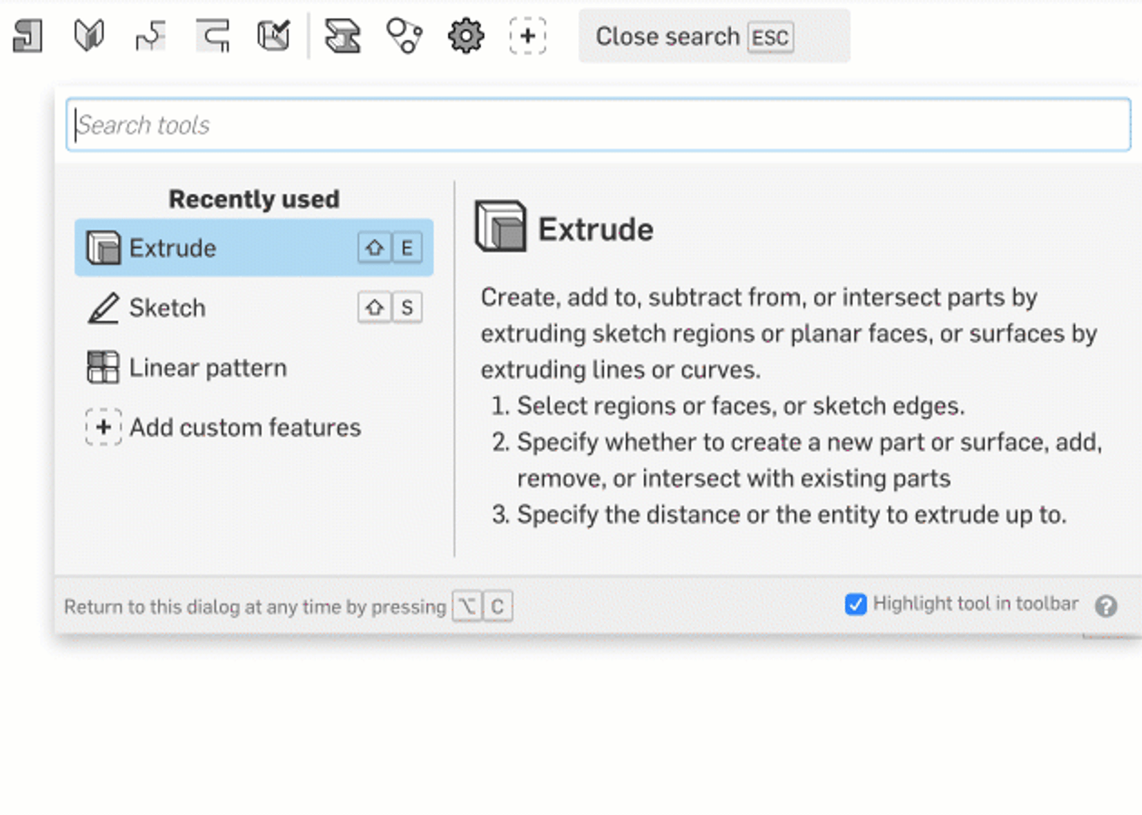Searching for a custom feature to use will now be easier through the command search. For those with a large collection of custom features, just open up the command search and start typing the name of the custom feature you want to utilize. Like any other feature, the command search will show you the closest options with the ability to open that custom feature right away.