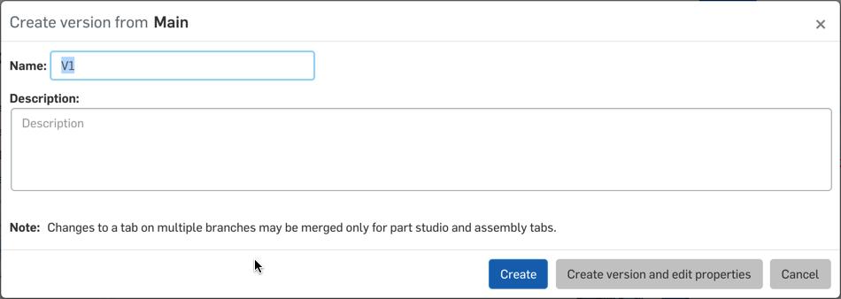 - The Create version button () now displays the Create version dialog, giving you the opportunity to add a name and description, set Properties for the entire Document, or cancel without creating a version.