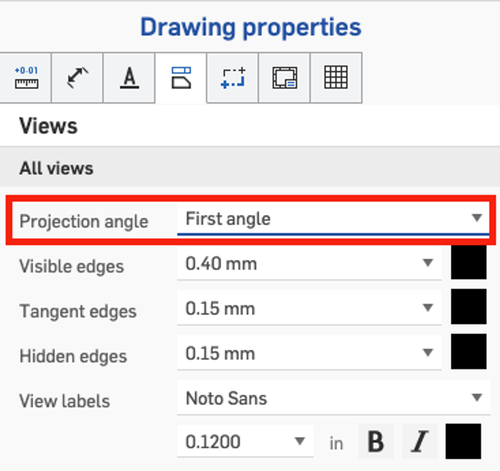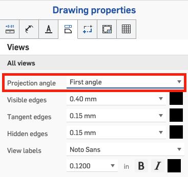 A new option has been introduced allowing you to quickly switch between First and Third angle projection on an existing drawing you've created. It is available in the Drawing properties, under the Views tab.