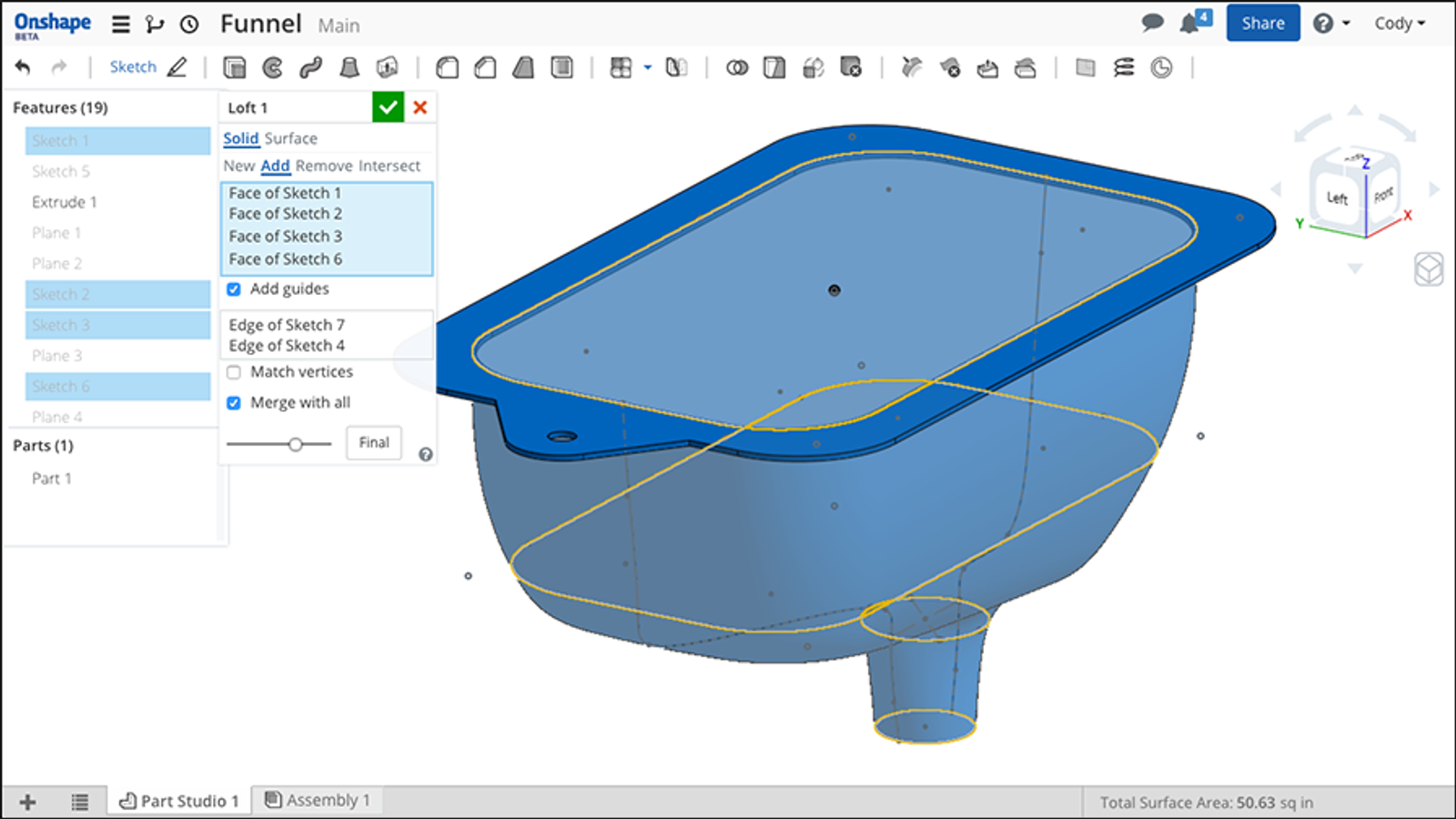 With this release, Onshape has added a feature that is often requested by users trying to create complex shapes: Lofts!