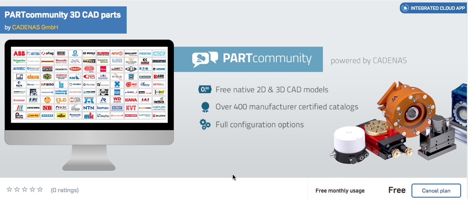 PARTcommunity is an online portal which offers certified 2D and 3D CAD models from global manufacturers from over 400 catalogs for free. These CAD models can be exported in Onshape formats.