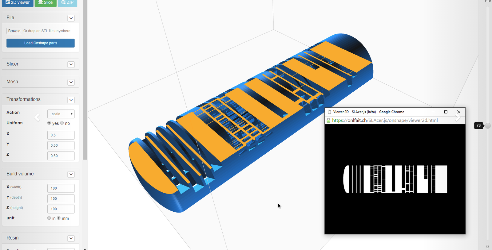 SLAcer is a slicer for SLA type 3D printers.