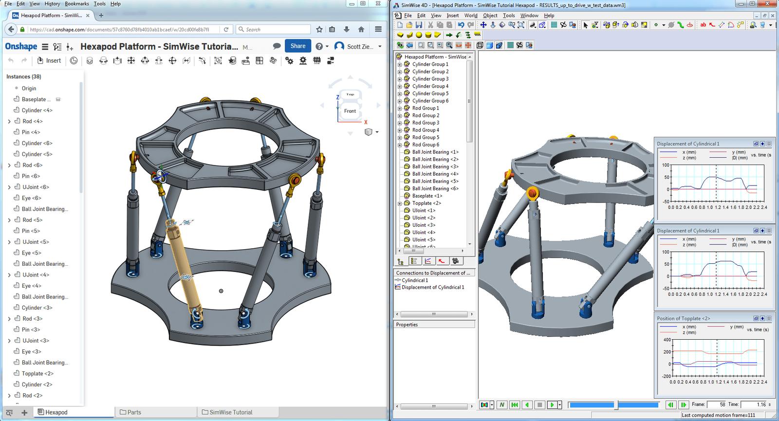SimWise 4D is a Windows desktop application that provides a comprehensive set of Mechanical Simulation capabilities and can access your Onshape part or assembly model directly, transferring geometry, assembly structure, mass and inertia properties, and assembly constraints from Onshape to SimWise 4D.