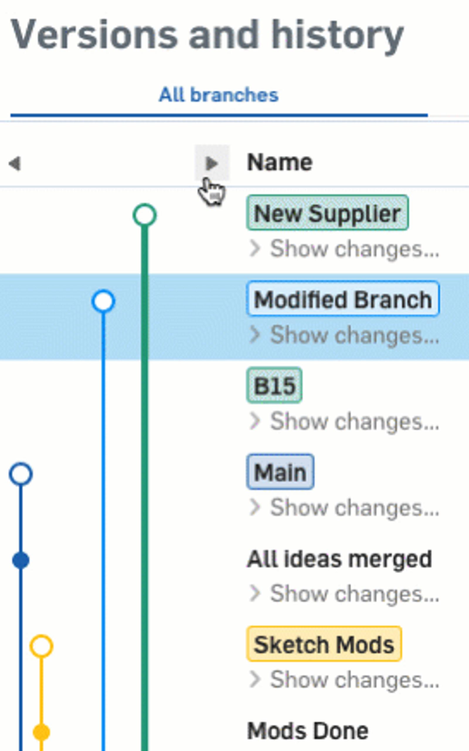 When a Document has a lot of branches, Onshape will now add scrollbars to the top and bottom of the Version Graph. If you are using a trackpad or a mouse with horizontal scroll capabilities, you can also scroll the graph when the scrollbars are not visible on screen.