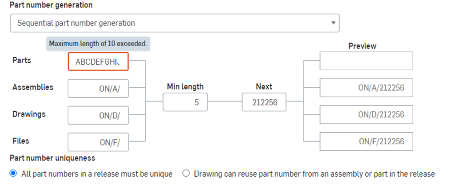 In this release, the part number prefix scheme has been increased from 6 to 10 characters.