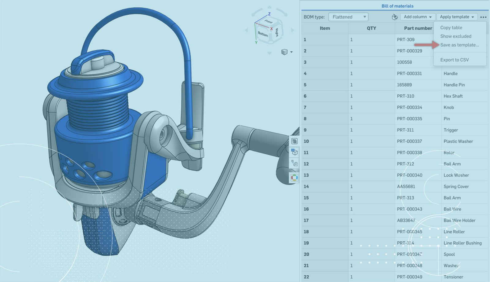 Company administrators can now create a template of their Bill of Materials customization that can be applied to future assemblies. BOM templates are immediately available to everyone in your company and the default BOM template can be set in your company settings.