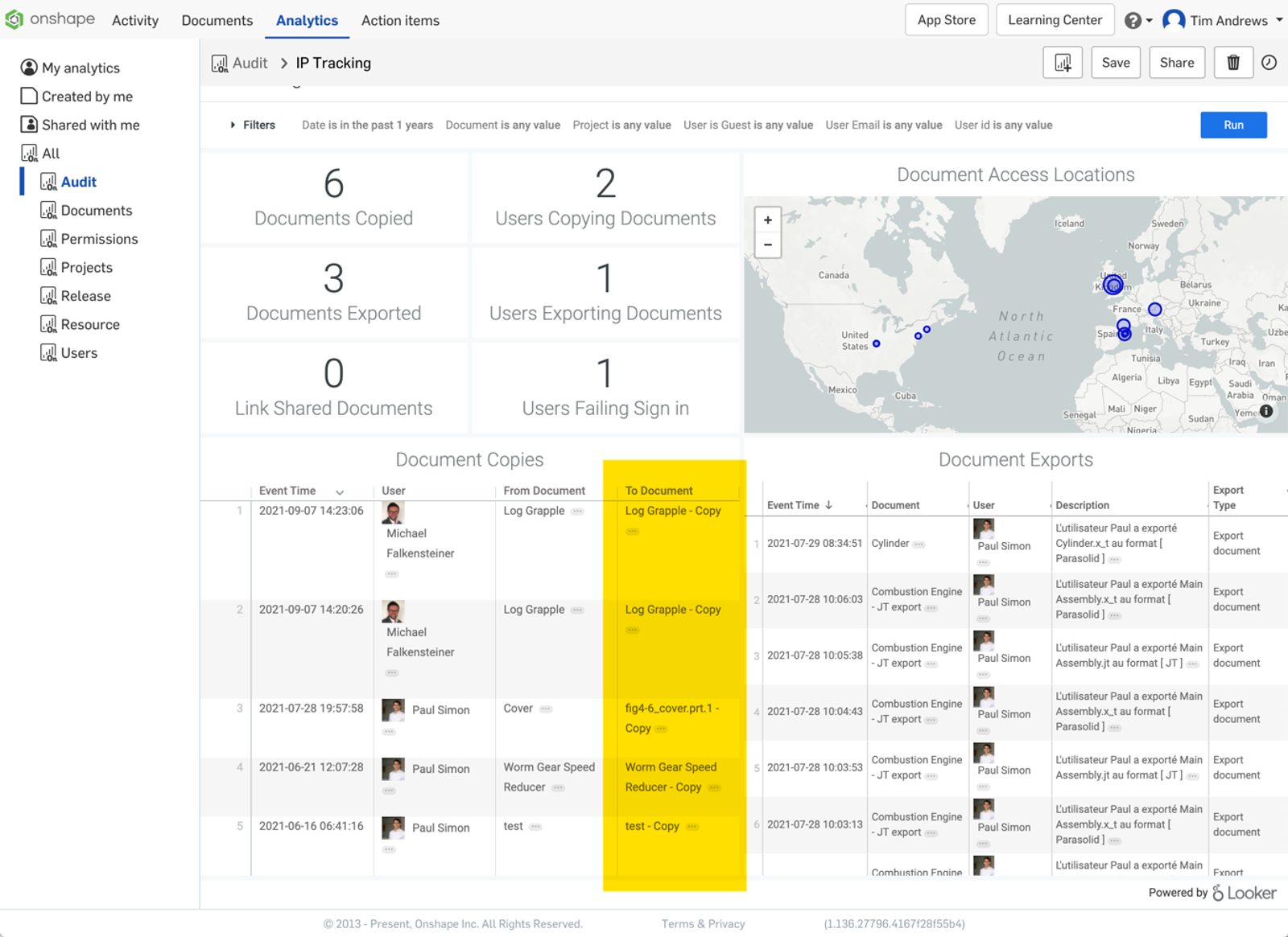In the dashboard for IP tracking you will see a new column showing if a Document was copied. This can be very useful to track if and when a Document has been copied and who copied it to help protect intellectual property by companies.