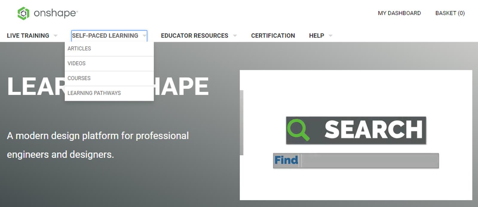 There have been a few organizational changes in the Onshape Learning Center. First, many of the dropdowns at the top are more condensed and concise.