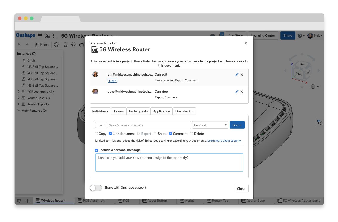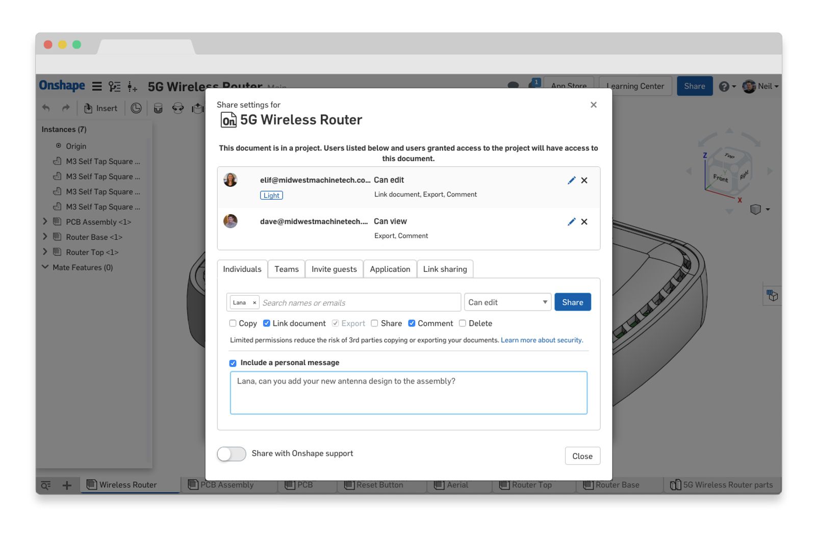 Miscommunication between design and production often leads to delays and costly errors. Onshape eliminates this risk by giving manufacturers real-time access to the latest designs, without the need to export files. With built-in collaboration and data management, engineering and supply chain teams stay perfectly aligned from concept to production.