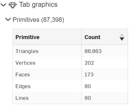 The tab graphics section is available in a Part Studio tab or an Assembly tab. This section provides a breakdown of the primitives used to create the 3D renderings you see. Triangles are graphics primates used to render faces and parts; this rendering is handled by your graphics card. The counts for vertices, faces, edges and lines in the tab are also provided. This information gives us a deeper understanding of what the time to regenerate consists of. The more triangles, for instance, the longer a regeneration is going to take.