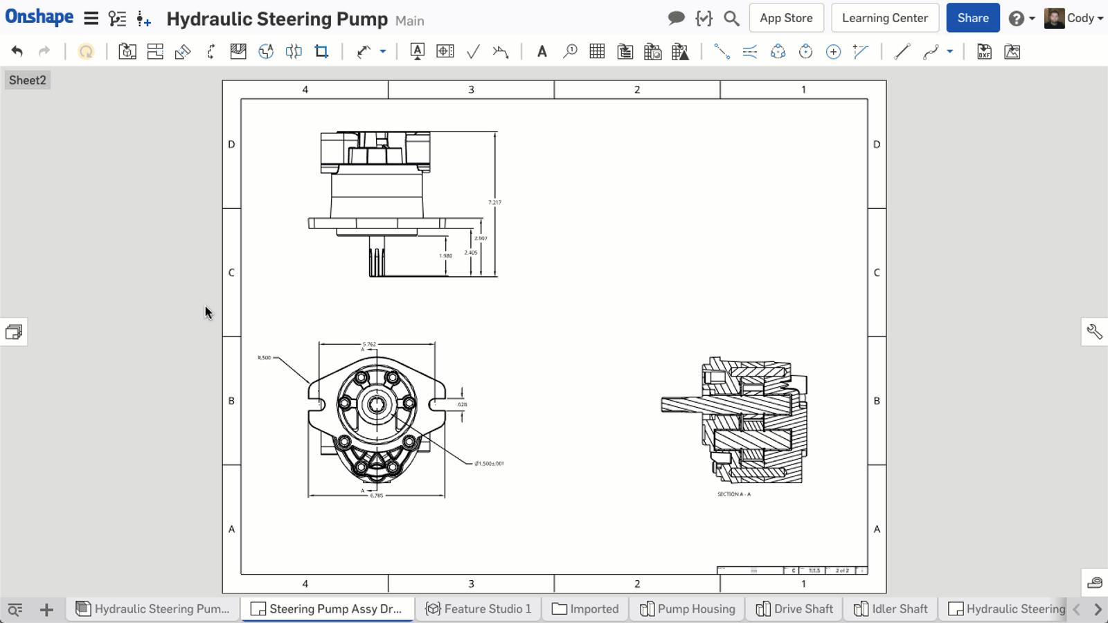 The Sheet Flyout in Onshape Drawings now displays Part Number, Version or Revision, and State of the sheet reference.