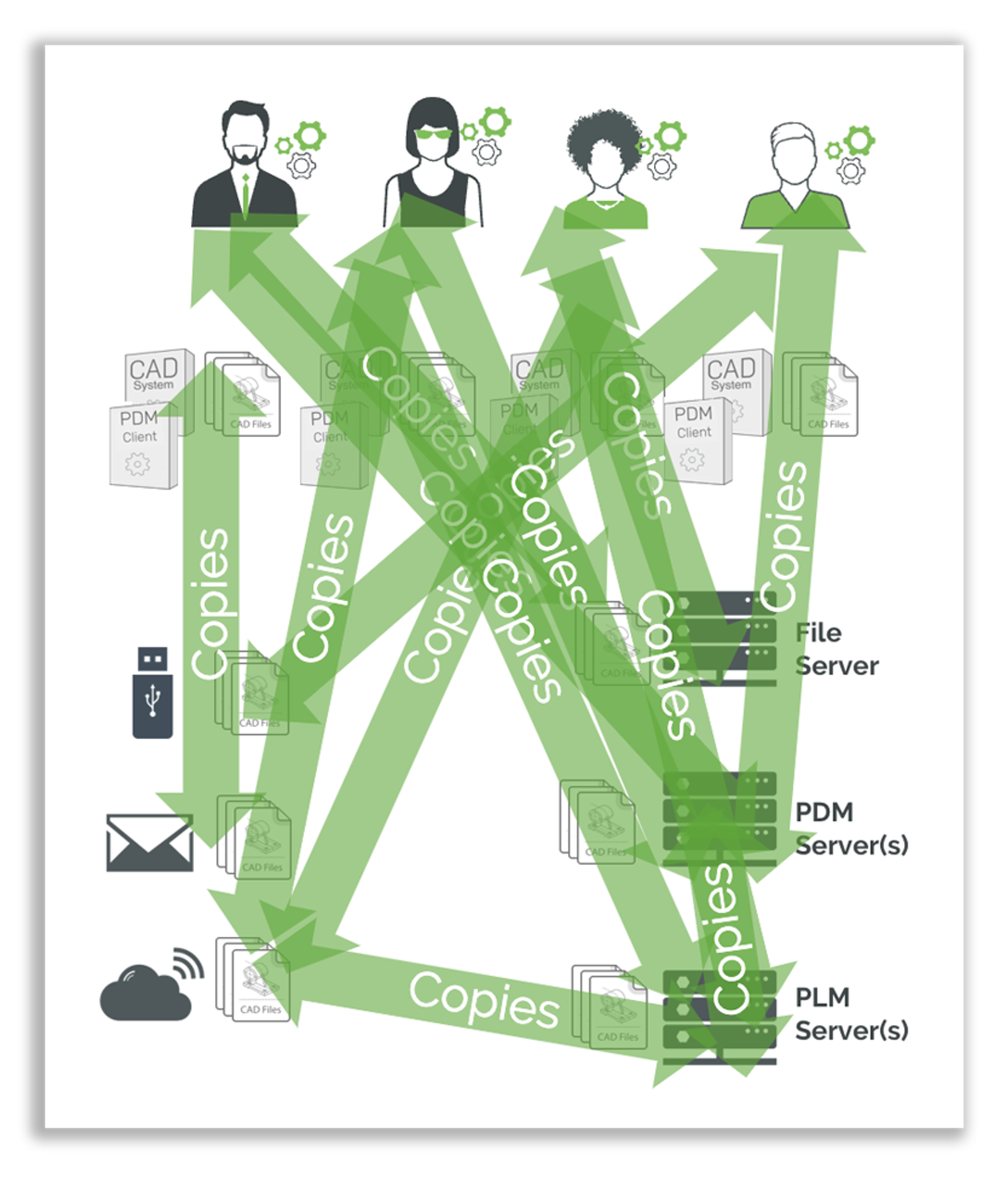 Historically, CAD, PDM, and PLM software are file-based and rely on servers to store design information, leading to inefficiencies and complications in the design and production process.
