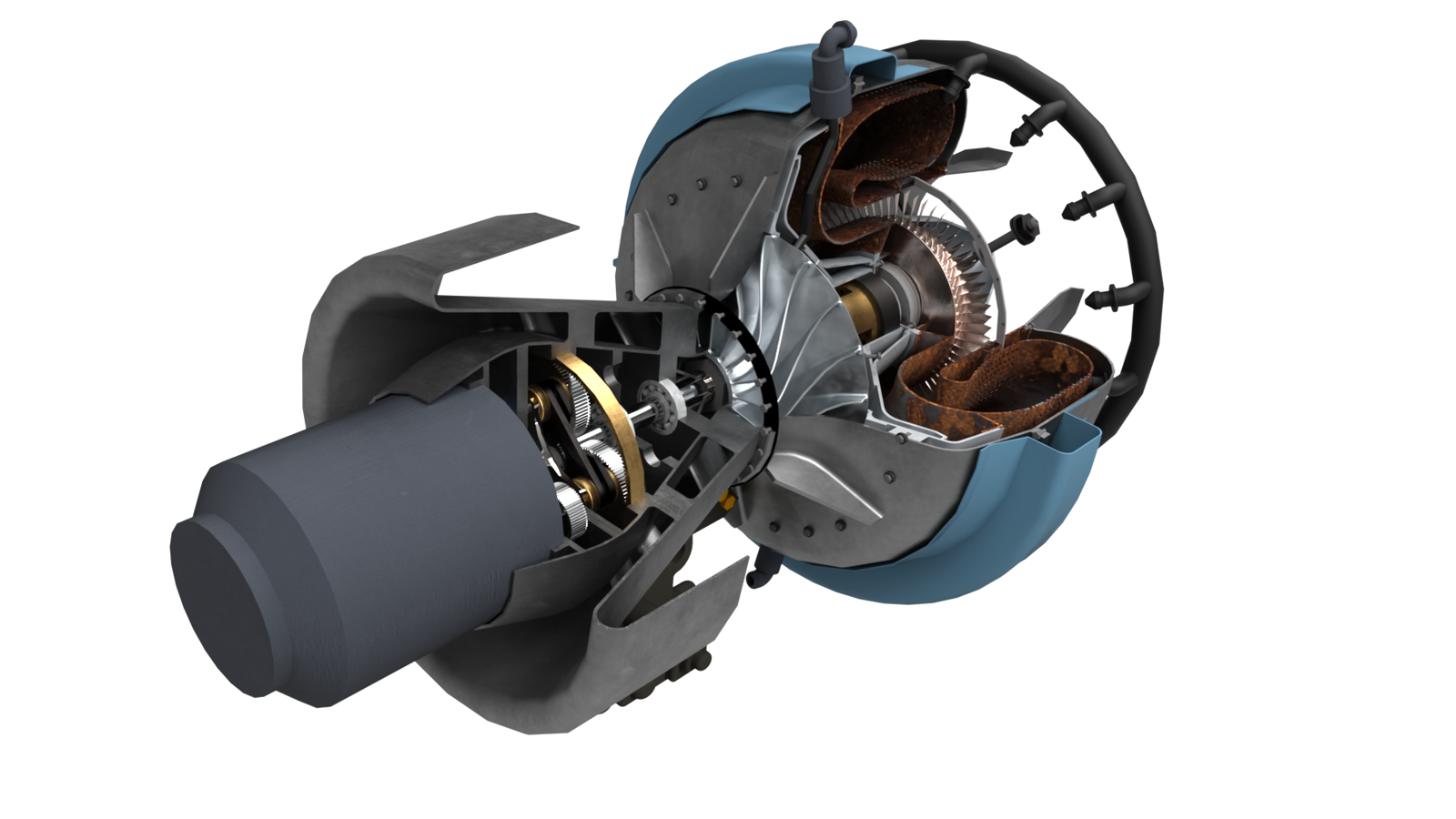 The PTC Education Team, which includes PTC’s Global Academic Program Senior Vice President Jordan Cox and Education Programs Director Peter Zink, created this beautiful model of an auxiliary power unit (APU).