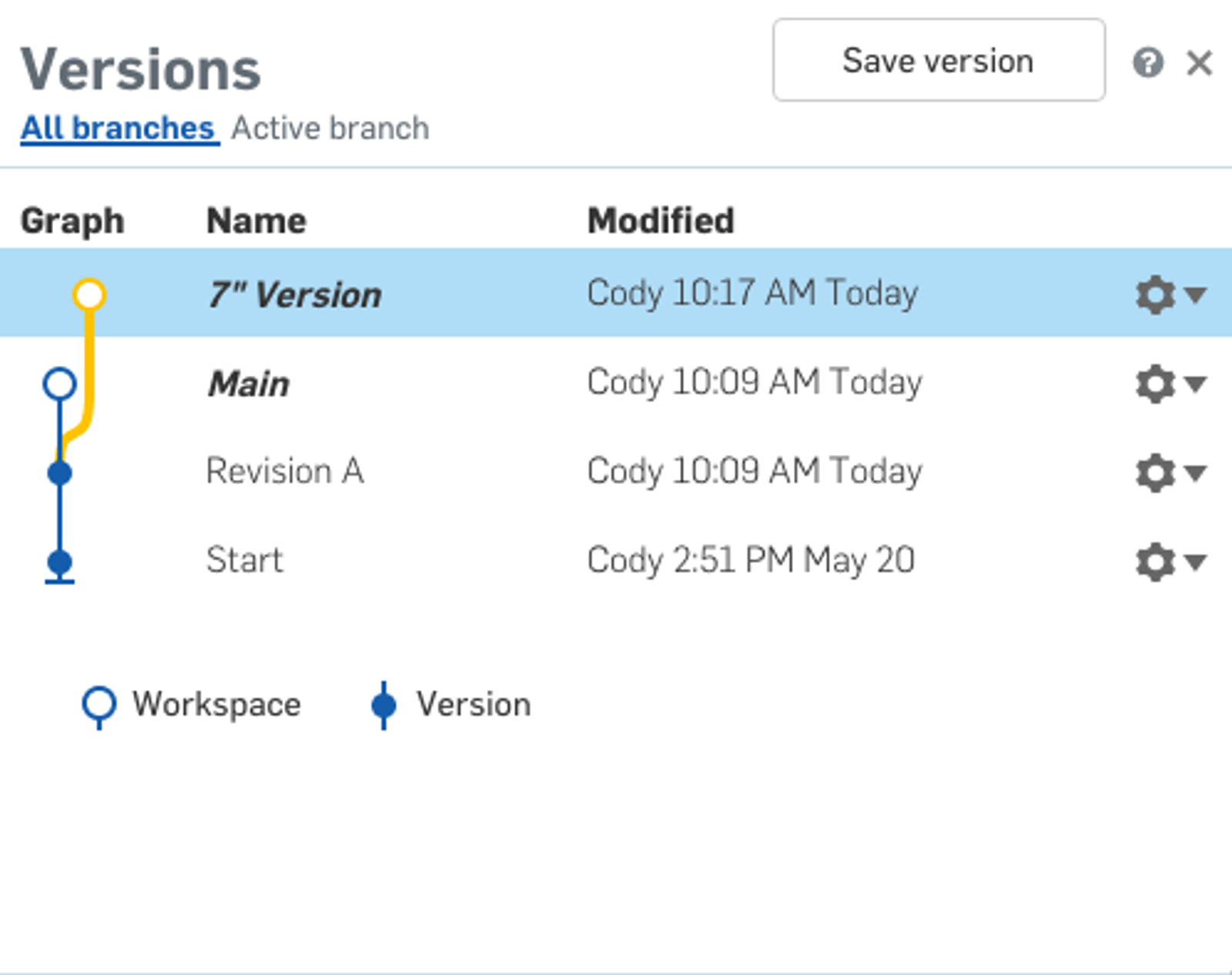 Branching designs in Onshape is a powerful capability that allows you to build variations and experiment with new ideas in your Document. Let’s take a look at creating a branch in your design.