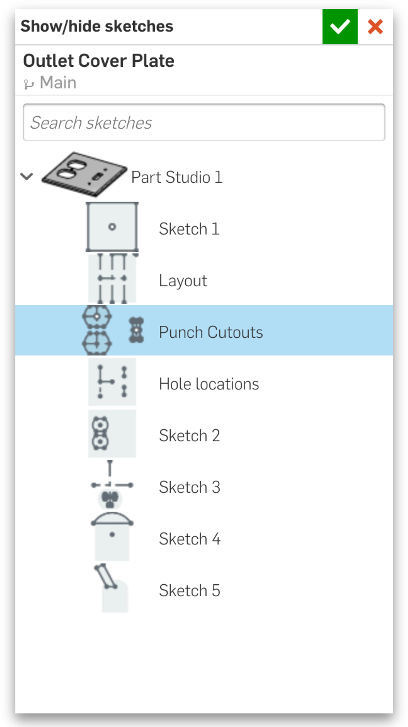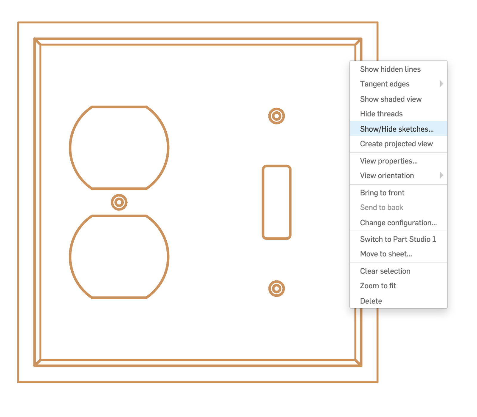 But in some cases, using the sketch itself can be a much cleaner way to communicate the desired result. Take a look at my example below, a power outlet/switch cover plate: