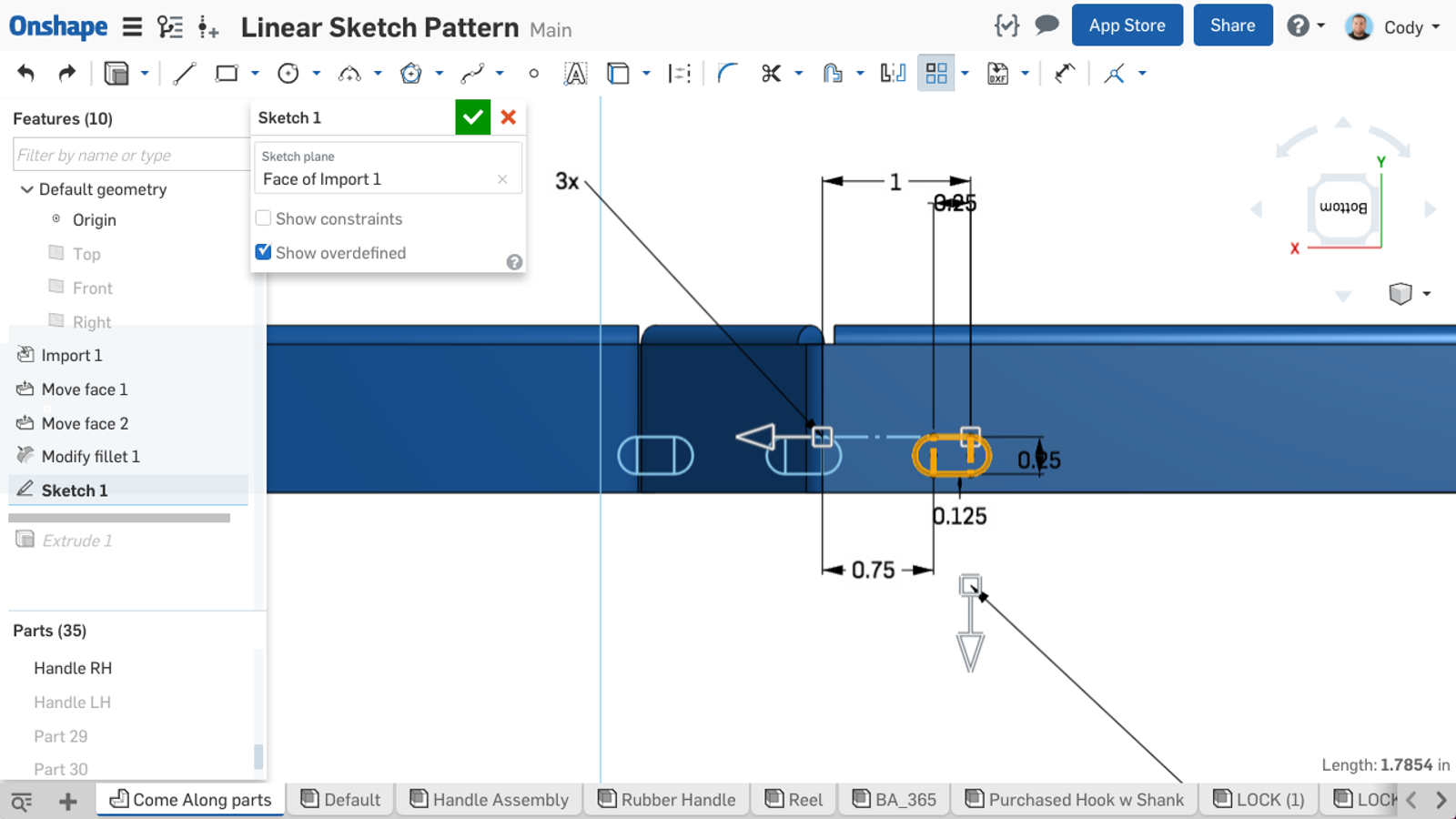 Onshape has many different commands for patterning sketches, faces, features and parts. Let’s take a look at creating a linear and circular pattern of sketch geometry.
