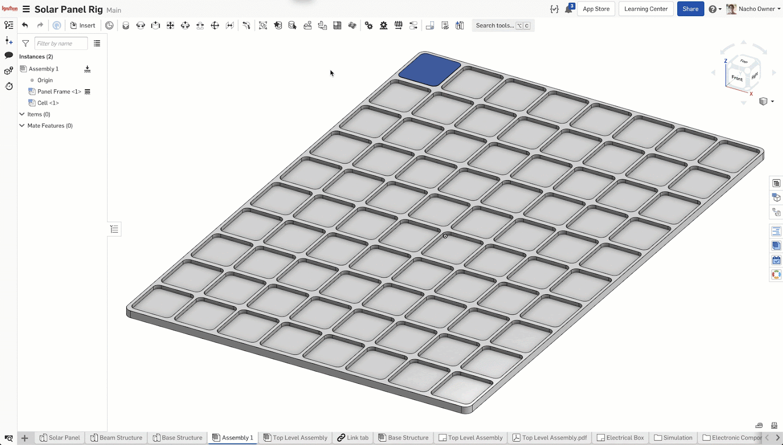For this solar panel, we need to assemble 80 cells – and the Replicate tool is perfect to assemble all of these in seconds.