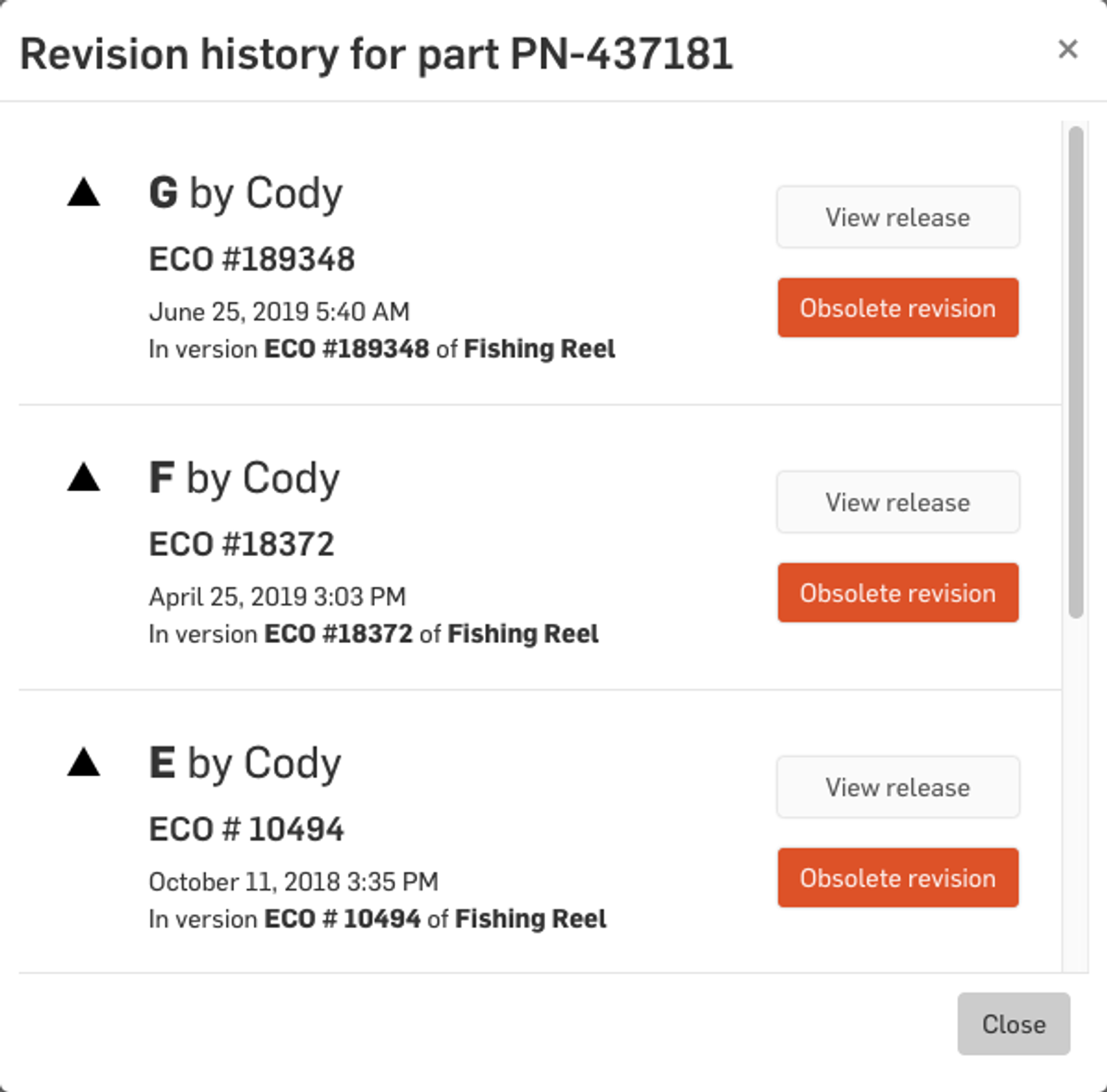 If you want to view a certain release, click “View release.” If you want to make a past release obsolete, choose “Obsolete revision.”