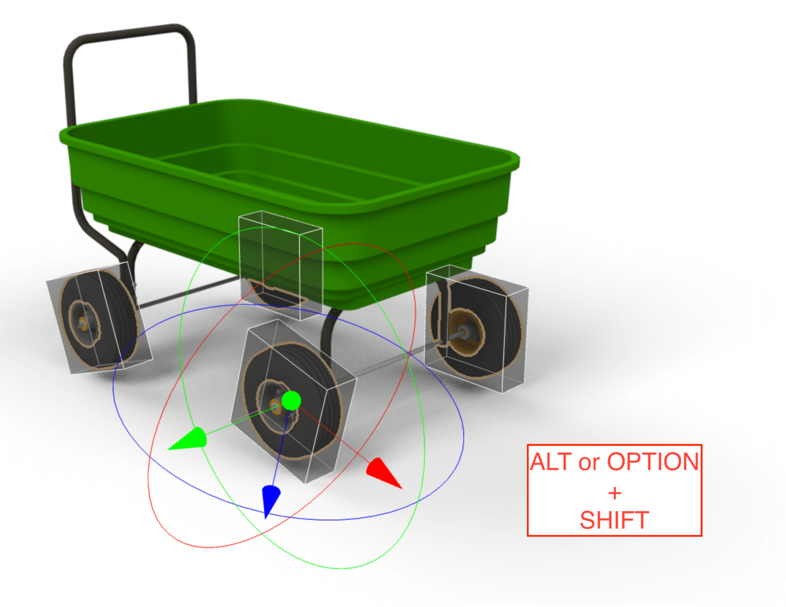 You may now move more than one instance at the same time using the Transform feature. Hold ALT (or Option) plus the SHIFT key on your keyboard while selecting any number of items, and you'll see the transform manipulator on the screen. Any translation or rotations prescribed through the manipulator will affect all selected parts.