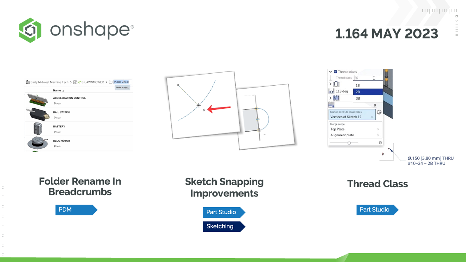 Even LiveWorx '23 does not stop the Onshape team from delivering updates! This release includes excellent improvements to the Hole tool, renaming folders, and drawings.