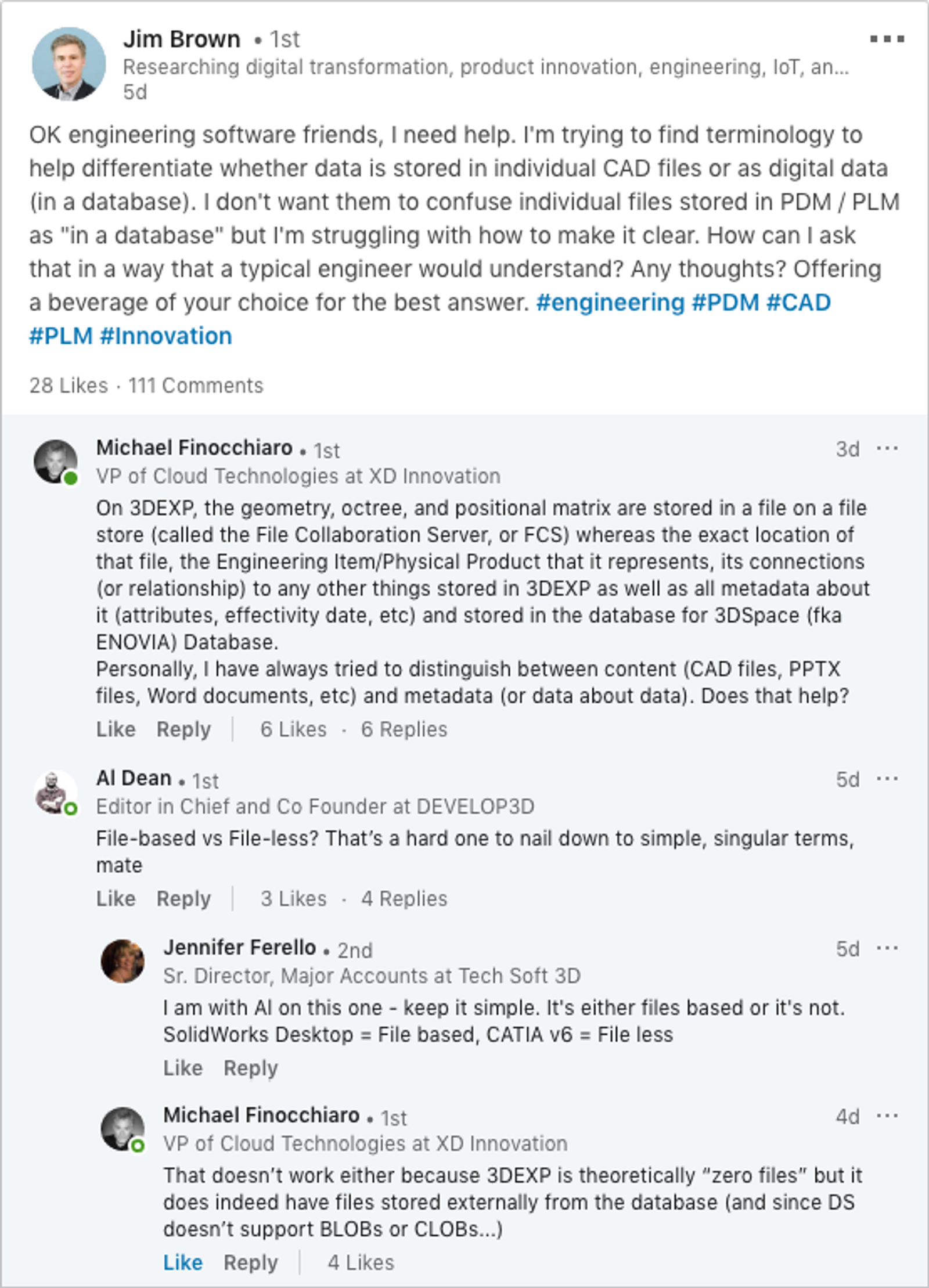 Even among very tech-savvy engineers, there is still a lot of confusion about what it means to store design information in a file versus a database. In a LinkedIn discussion that popped up in my feed, I noticed the following question: