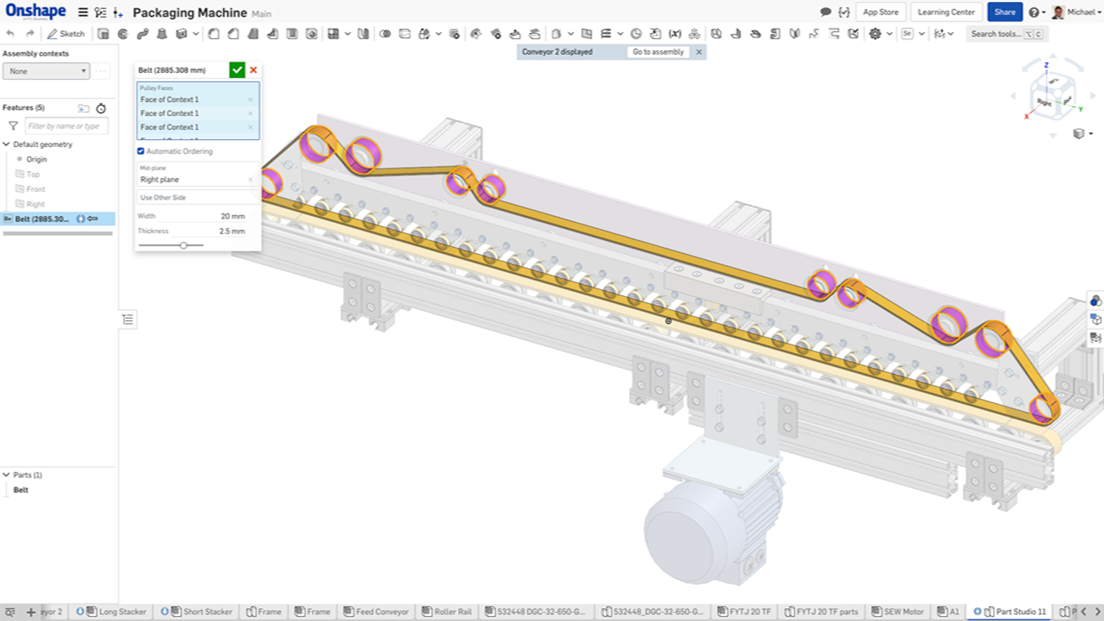 アセンブリの動作もインコンテキストには影響しません。複数のアセンブリコンテキストを使用して 1 つまたは複数のパーツを編集し、必要に応じてアセンブリコンテキスト (アセンブリの状態) を更新できるようになりました。また、間違えた場合でも、Onshape ではモデルの以前の状態に戻すことができます。これは他の CAD システムでは不可能です。
