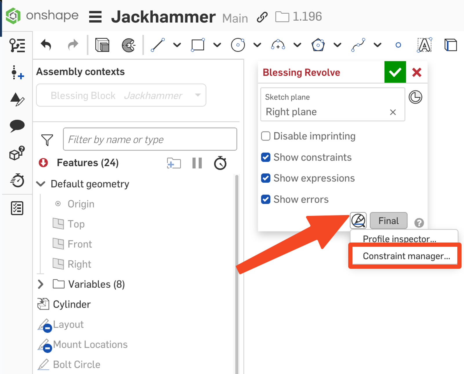 By leveraging the Constraint manager, you gain greater control over your sketches, leading to more robust and predictable designs.