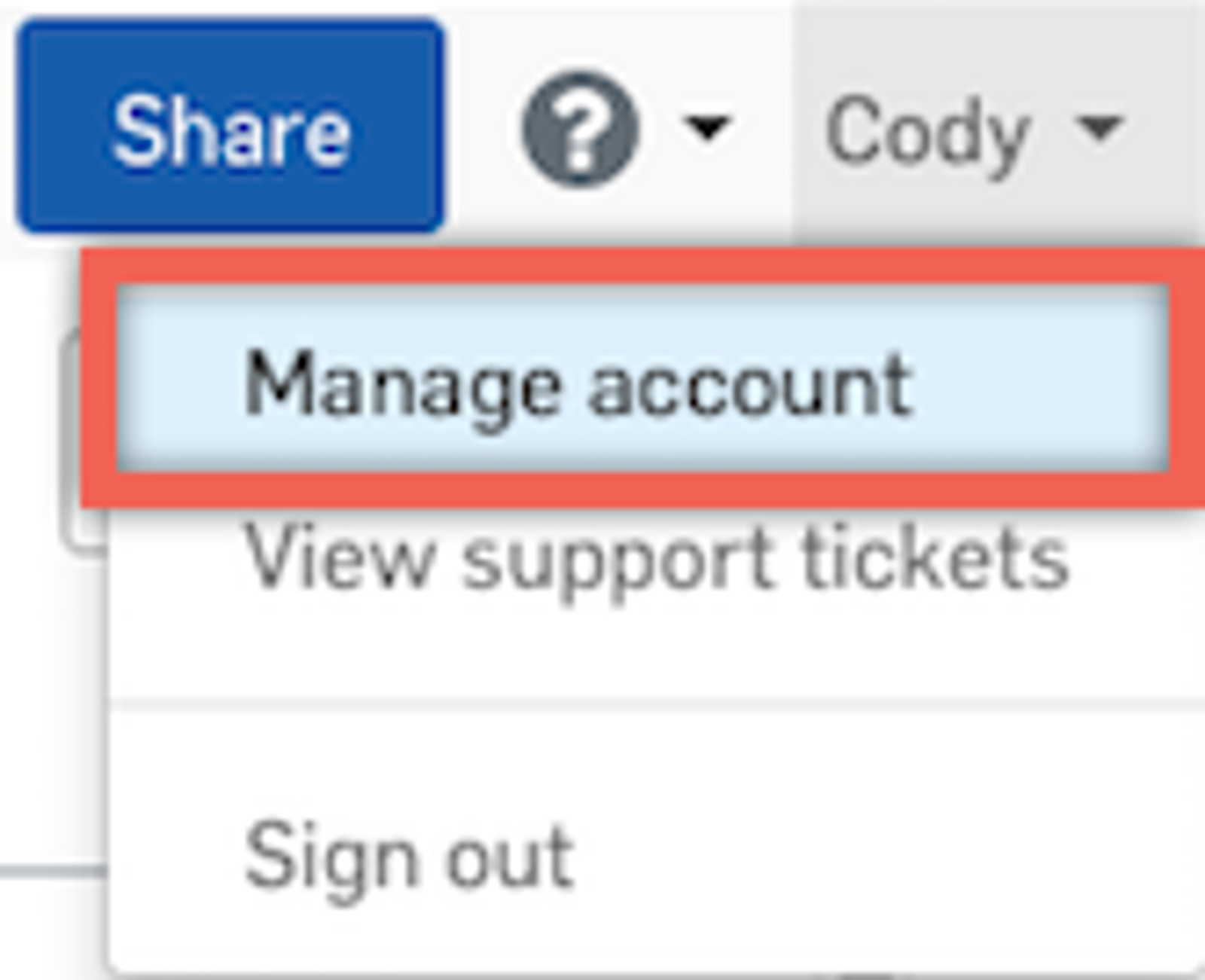 To change these settings, select “Manage account” under your user name in the top right corner.