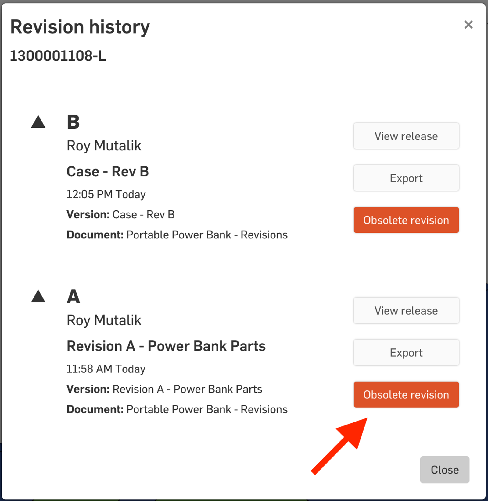 - Find the revision you’d like to obsolete and click the “Obsolete Revision” button.