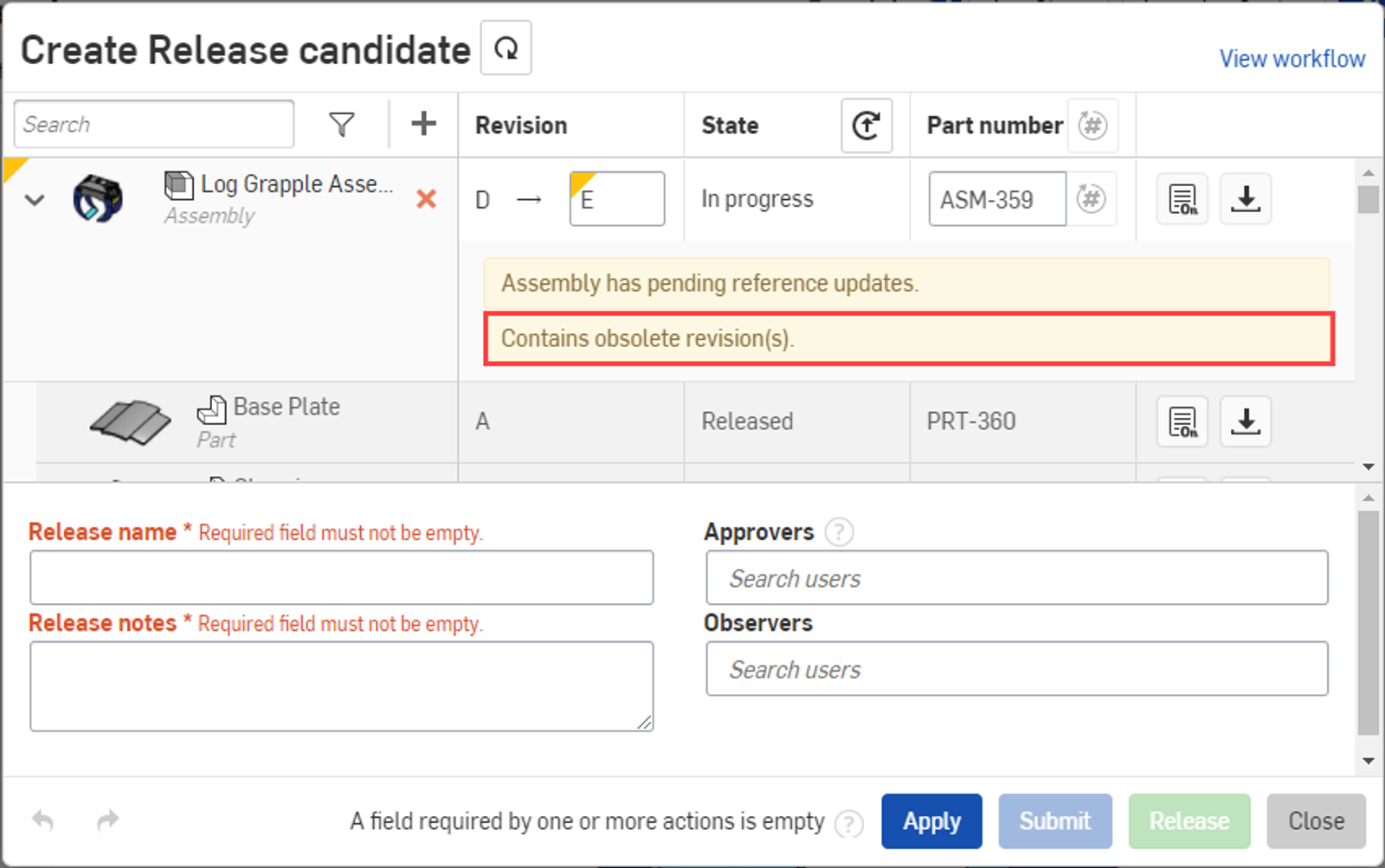 Release Management now detects and warns the user if the candidate contains an obsolete component.